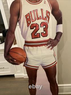 The product is a vintage life-size cardboard cutout of Michael Jordan from 1987. It features the iconic basketball player in his Chicago Bulls uniform and is officially licensed by the National Basketball Association (NBA). The cutout is part of the Measure Up collection, providing fans with a unique way to display their support for Jordan and the Bulls.